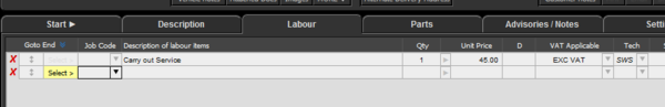 - The unit price can be automatically filed with your standard labour rate (If set up).