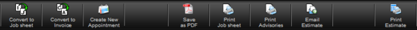 Along the bottom of the screen, are various Estimate specific buttons although these are mainly self explanatory.