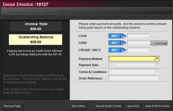 Issue Invoice - Until you issue an invoice it will remain as a document in progress, and shown on the main menu screens for quick selection