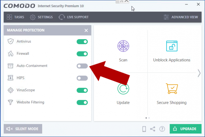 You can disable it completely, system wide as shown above, or it can be disabled on a folder/app basis, see here for more: https://help.comodo.com/topic-399-1-790-10323-.html
