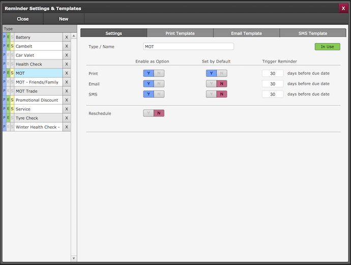 You can add as many reminder templates as you like and they can all be sent via different methods, such as;