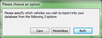 If you chose automatic above, you are then asked to choose either Cars, Motorbikes or Both.