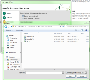 Two major things to be aware of is : If when running the import in sage you are presented with an error or warnings dialogue, this does not always mean the data was not imported ! Take a moment to check your sage records before re-attempting an import. It is difficult to delete anything from sage, so to prevent issues arising ensure you perform a backup in sage before running any import.