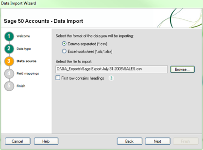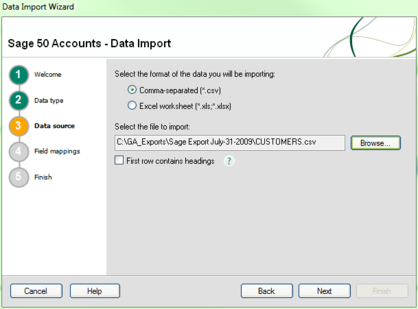 9. Click on Next, followed by Finish, Sage will now import the customers file.