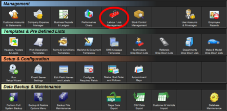 The labour manager allows you to populate the database with categorised jobs which you frequently carry out to aid in document creation.
