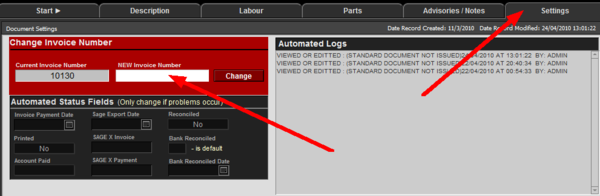 Garage Assistant allows you to change invoice numbers to fill in any blanks or if an error has been made.