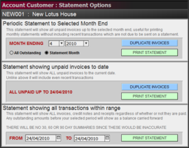 You can then choose to print statements for all customers using a single click, with options to specify the month end for statements to run to