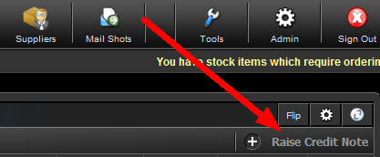 You can raise a credit note directly by clicking on the 'Raise Credit Note' buttons found on the main menu screens