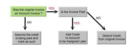 When you issue the credit note, depending on the type of invoice that was initially created, a number of things can happen, which are illustrated in the following flow chart